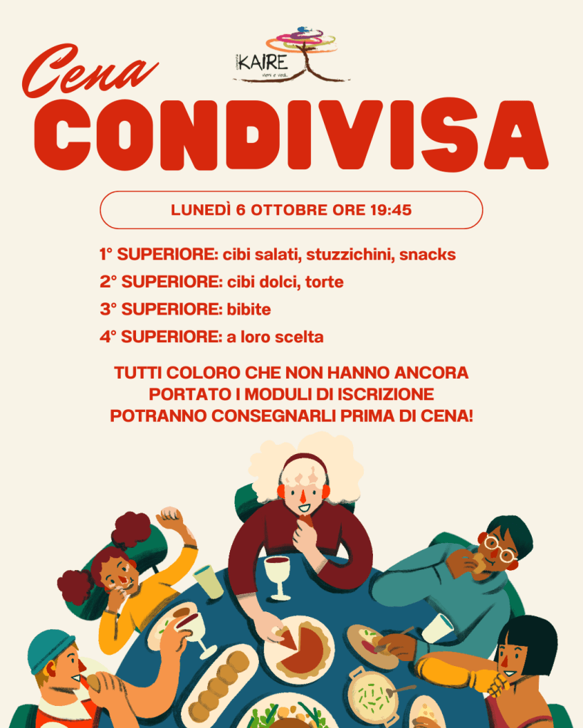 Sarà l’occasione per accogliere i ragazzi di 1ª superiore, che iniziano questa nuova avventura, e allo stesso tempo per salutare con affetto i nostri “grandi” di 4ª, che stanno concludendo il loro percorso. Un momento di festa, amicizia e condivisione, in perfetto stile Kaire.